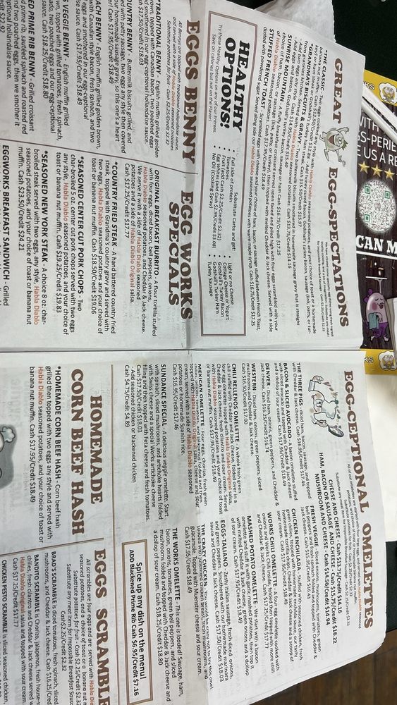 Welcome to Egg Works - 2490 Sunset Rd, a delightful American breakfast and brunch haven in Las Vegas. This vibrant eatery prides itself on serving an extensive selection of dishes, perfect for any time of day. The menu features mouthwatering options like the Bandito Scramble, loaded with chorizo, jalapenos, and fresh cilantro, and the hearty Works Chili, lovingly crafted with homestyle flavors.