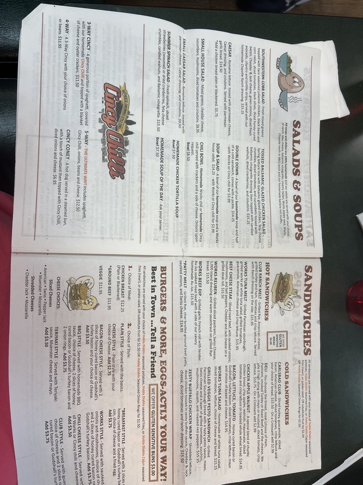 A bowl of our homemade soup and half of a cold sandwich, comes with a pickle. with Works or Cincy chili for 2.00